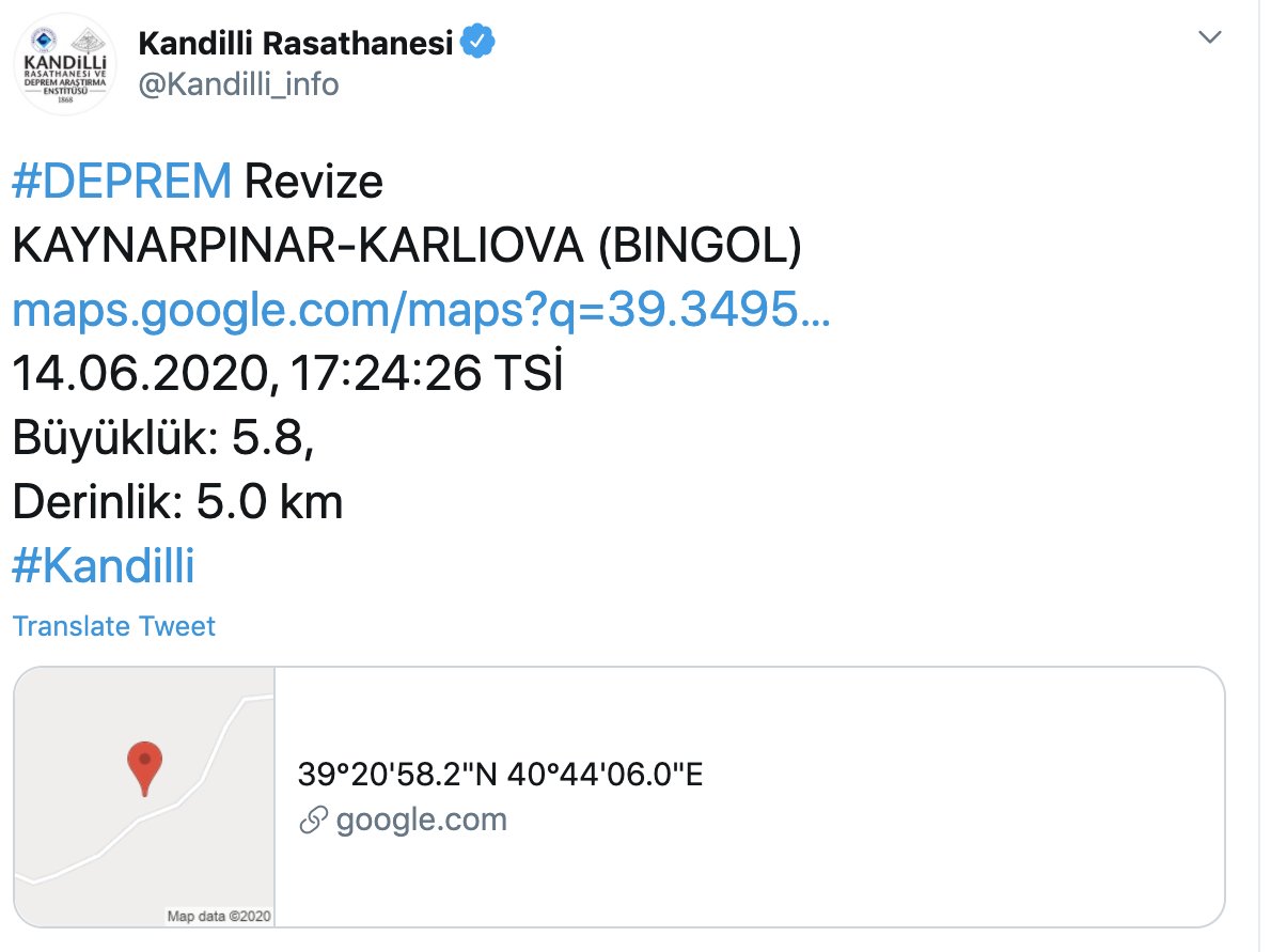 / Kandilli Rasathanesi Twitter - Kandilli Rasathanesi Krasathanesi Twitter : 4 people have died according to the initial reports.